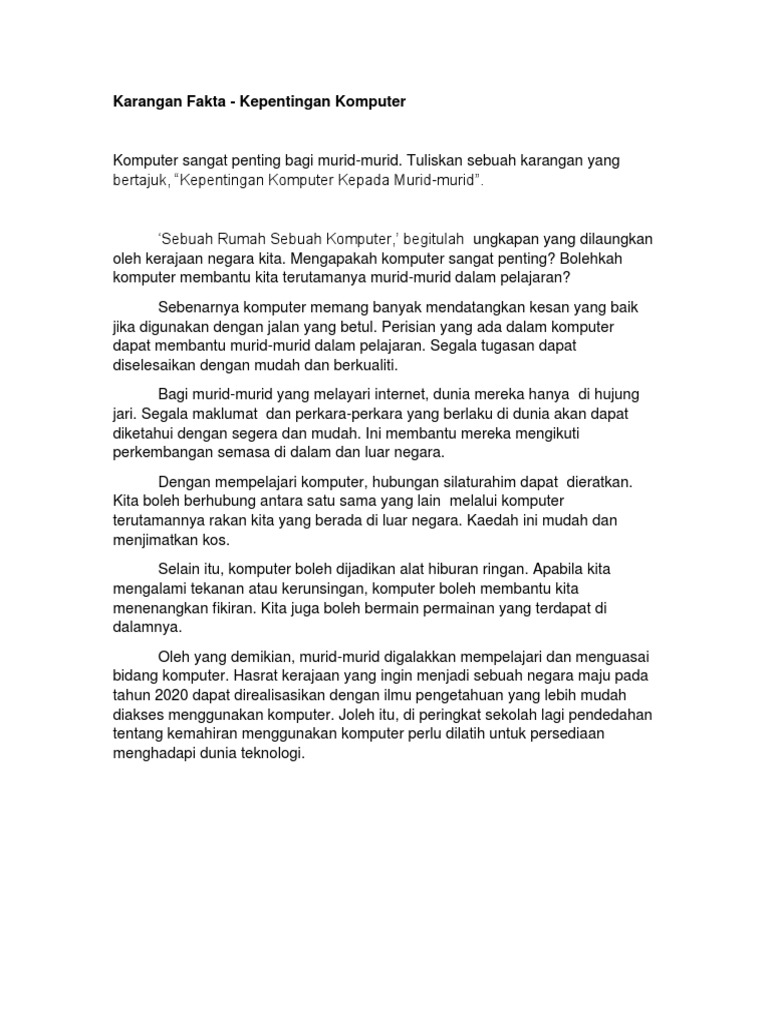 Contoh Contoh Karangan Sekolah Rendah Fakta Kegunaan Komputer Pdf