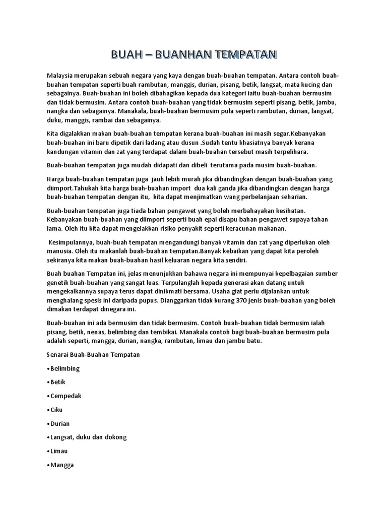 Buah Buahan Tempatan Contoh Karangan Pdf